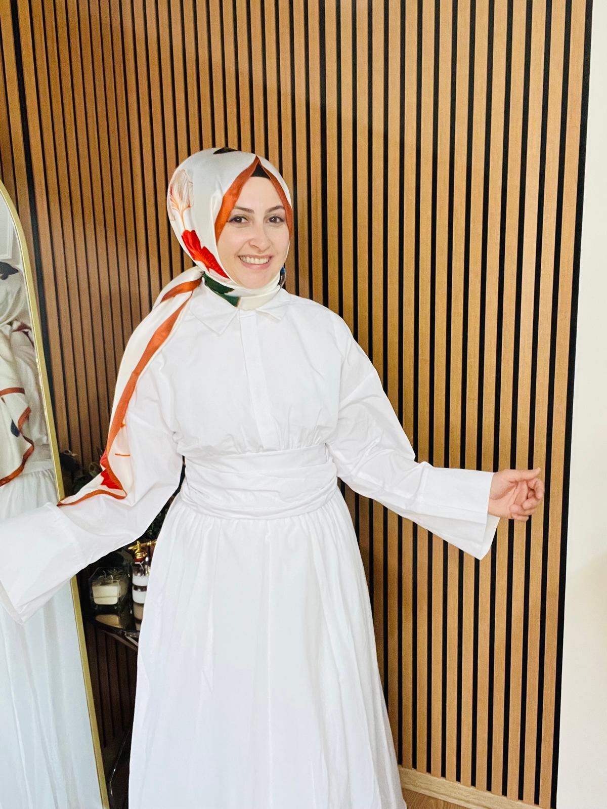 Elbisenin bel kısmında yer alan bağlama detayı, hem estetik bir görünüm sunar hem de vücut hatlarını güzel bir şekilde vurgular. Farklı bedene uyum sağlayacak şekilde tasarlanan bu bağlama, kullanıcının kendi stiline göre ayarlanabilir. Ayrıca, A kesim modeli ile her bedende şıklığı artırarak, kışın kalın bir kaban altında ya da yazın hafif bir ceketle kombinlemeye uygundur.